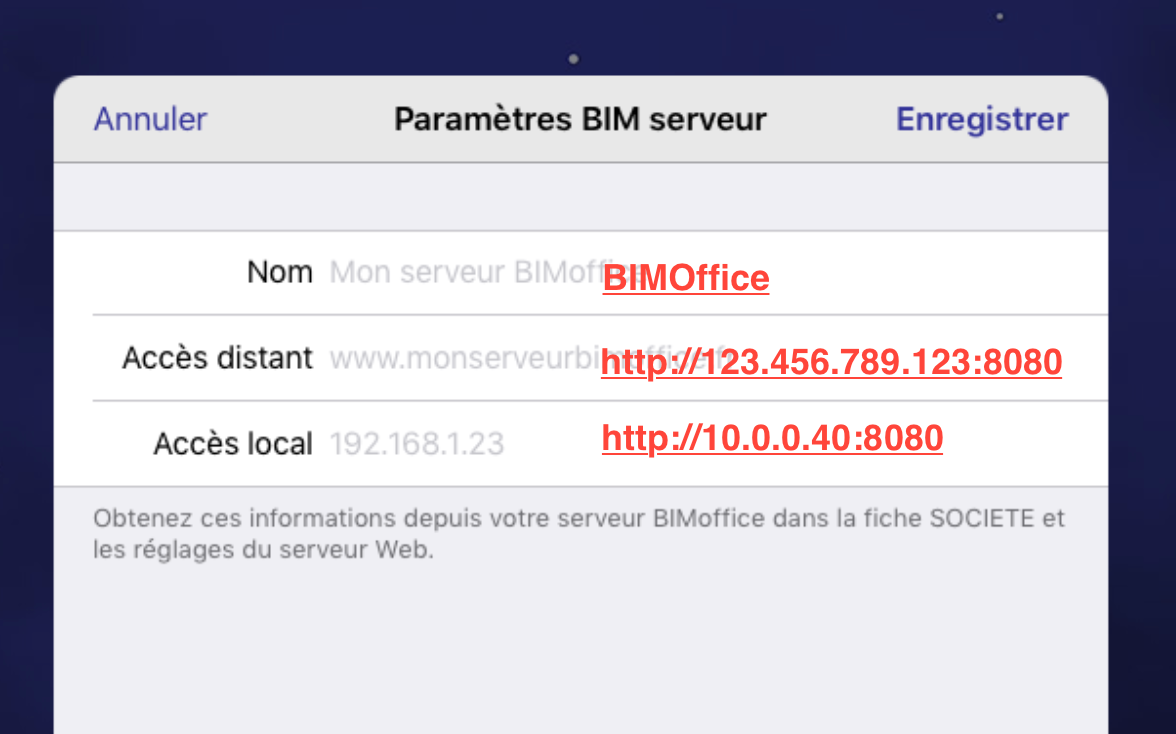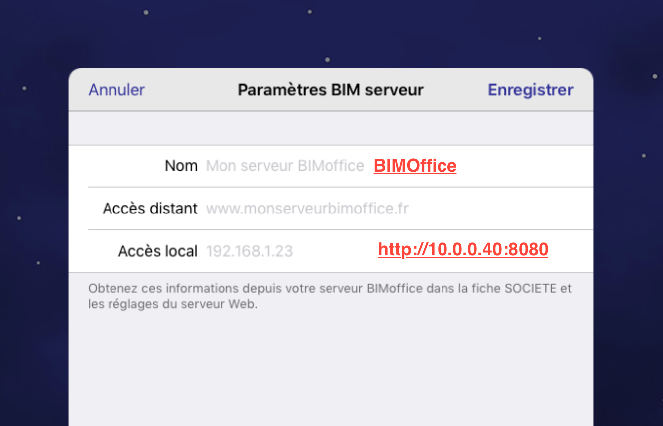 Ouvrir la fenêtre de Serveur web dans BIMOffice